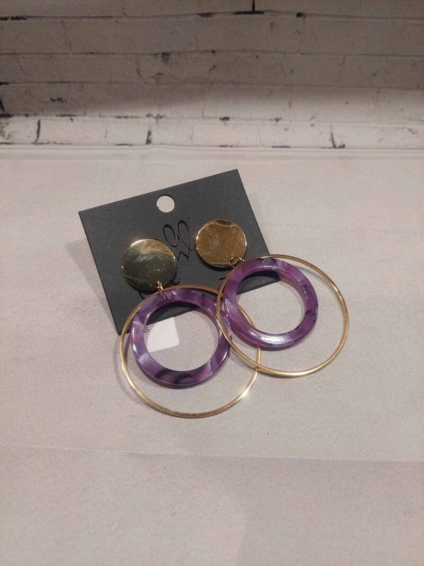 Wauw! Hoe leuk zijn deze gouden oorbellen in de vorm van twee rondjes waarvan een gouden en een paarse! De oorbellen zijn een echte musthave en zijn zowel leuk te dragen op een chique manier. Houd jij meer van een speelse look? Combineer dan deze oorbellen met meerdere matchende oorbellen! De oorbellen zijn gemaakt van stainless steel en sheet materiaal. De oorbellen hebben een afmeting van 6,2 cm en zijn verkrijgbaar in de kleuren paars en beige.