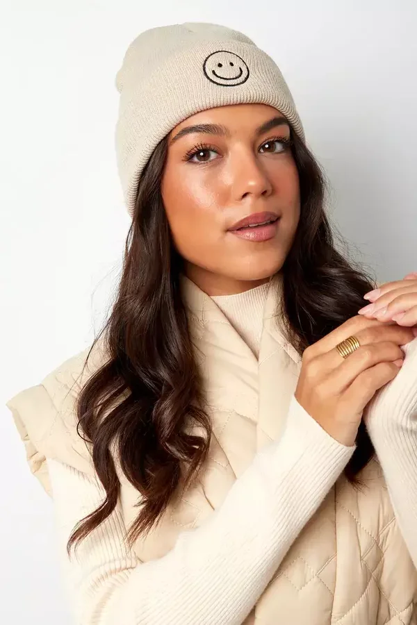 De must have voor deze herfst en winter, een kleurrijke beanie met smiley. De beanie is in veel verschillende kleuren beschikbaar. De beanie is van acryl.