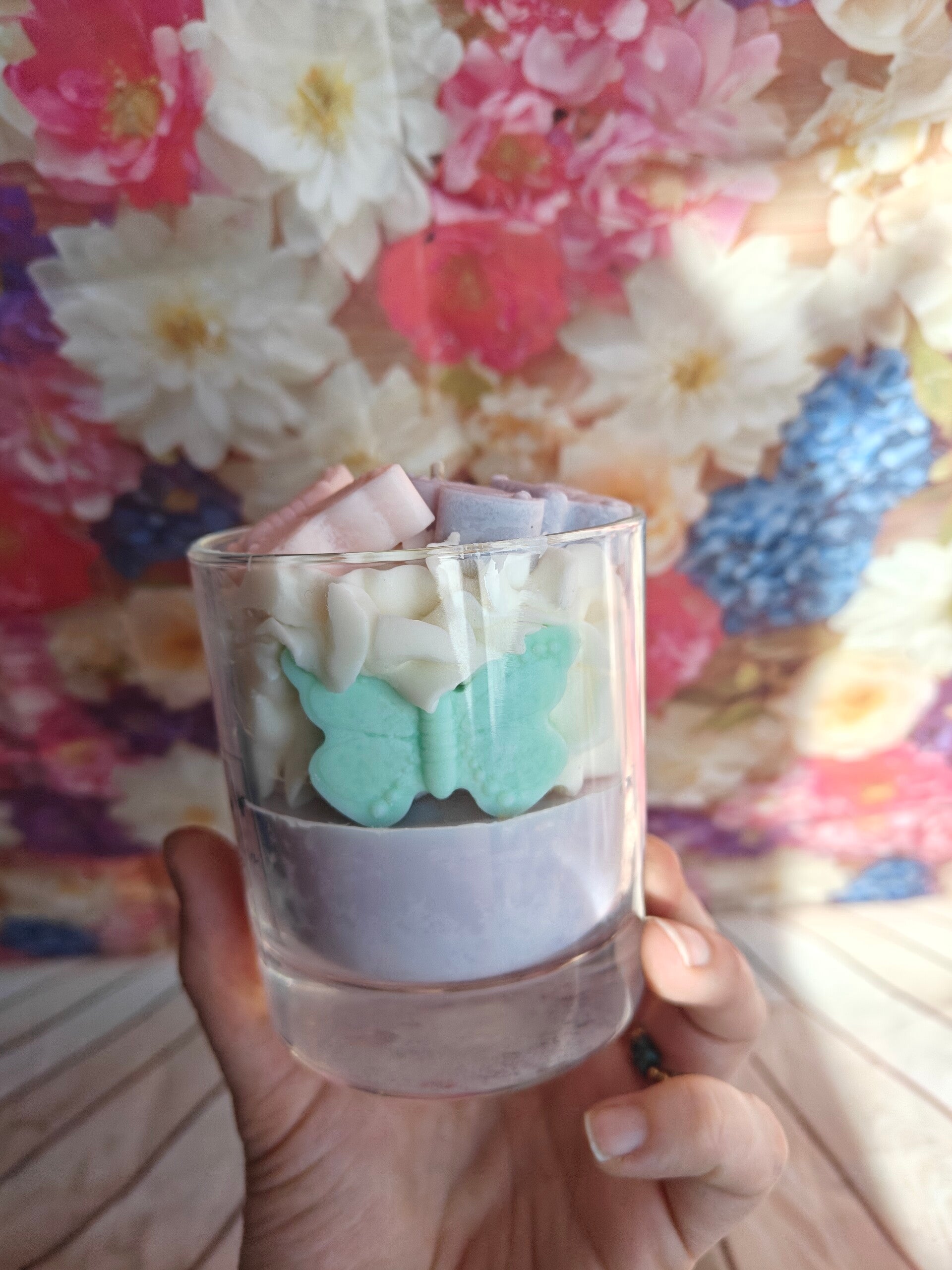 Butterfly Garden is een decoratieve statementkaars binnen de lente collectie van Loomi. De kaars heeft een zachte pastelkleurige basis met een rijk afgewerkte swirl en handgegoten vlinders in pastelkleuren, subtiel afgewerkt met een fijne glitterlaag.